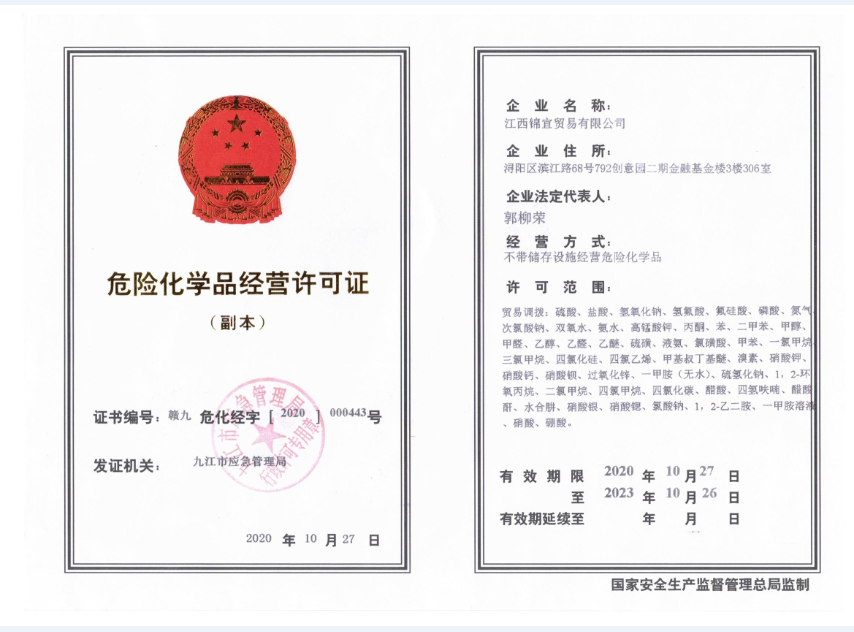 【江西守澤貿易有限公司部分資質】 ※ 企業法人營業執照 ※ 開(kāi)戶許可證 ※ 危險品運輸許可證